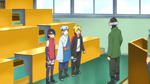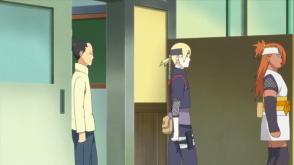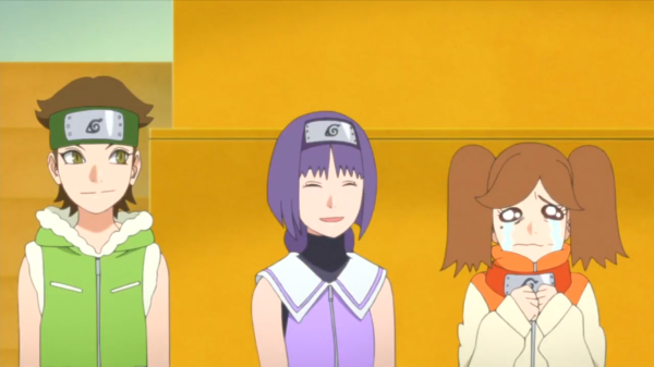 Os ninjas restantes formaram o Time 3. Uchiha Sarada, Uzumaki Boruto e Mitsuki estão juntos como esperado pelos fãs. Ainda rolou uma piadinha de Mitsuki perguntando se eles não seriam o Time 7. Referências! A equipe será treinada por Konohamaru e, logo de cara, já teve treta! Uchiha Sarada acredita ser incompatível com Boruto. Vale lembrar que antes do Aburame Shino chegar, ela estava reclamando do fato desse colega nunca ter um plano e sempre agir com improviso. Esses dois vão aprender muito um com o outro daqui para frente!